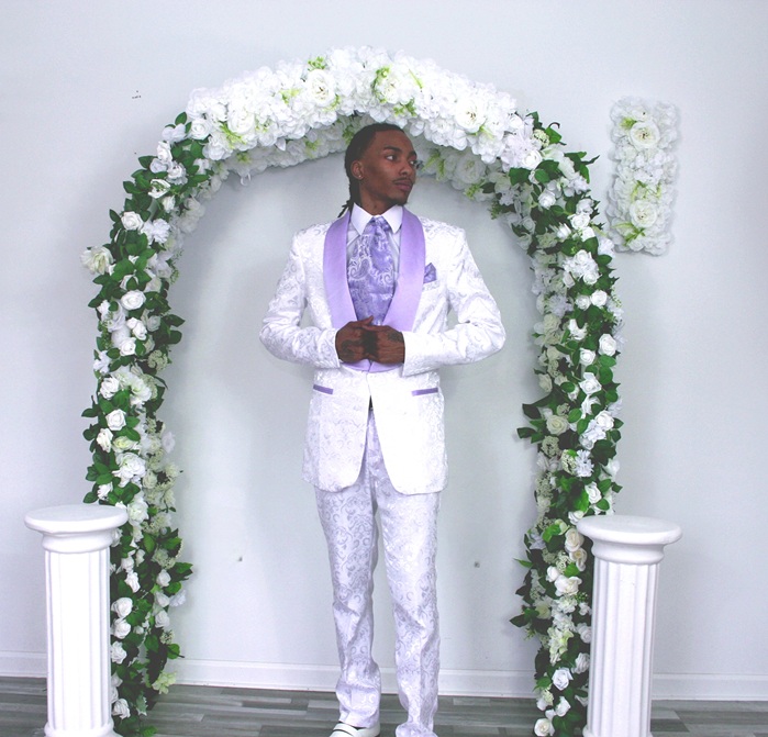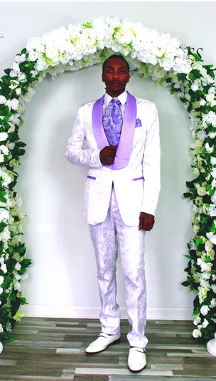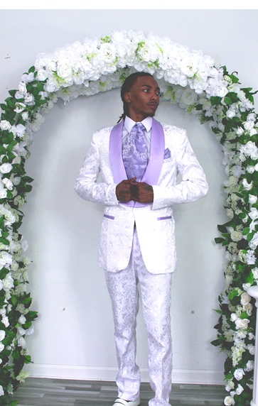 Color: White with lavender lapels